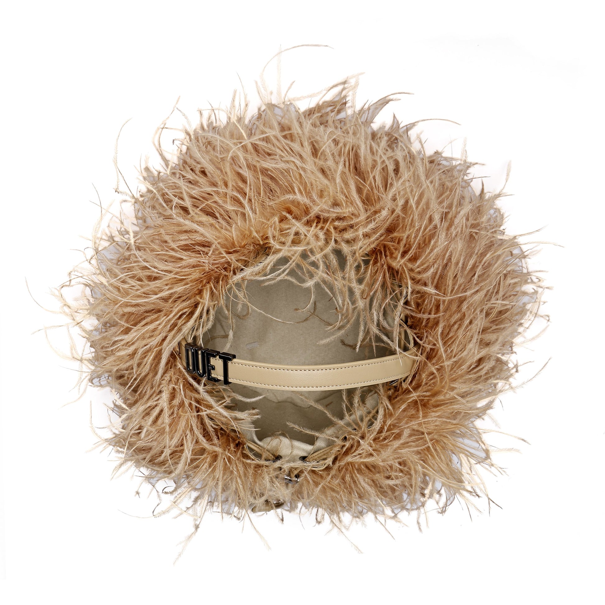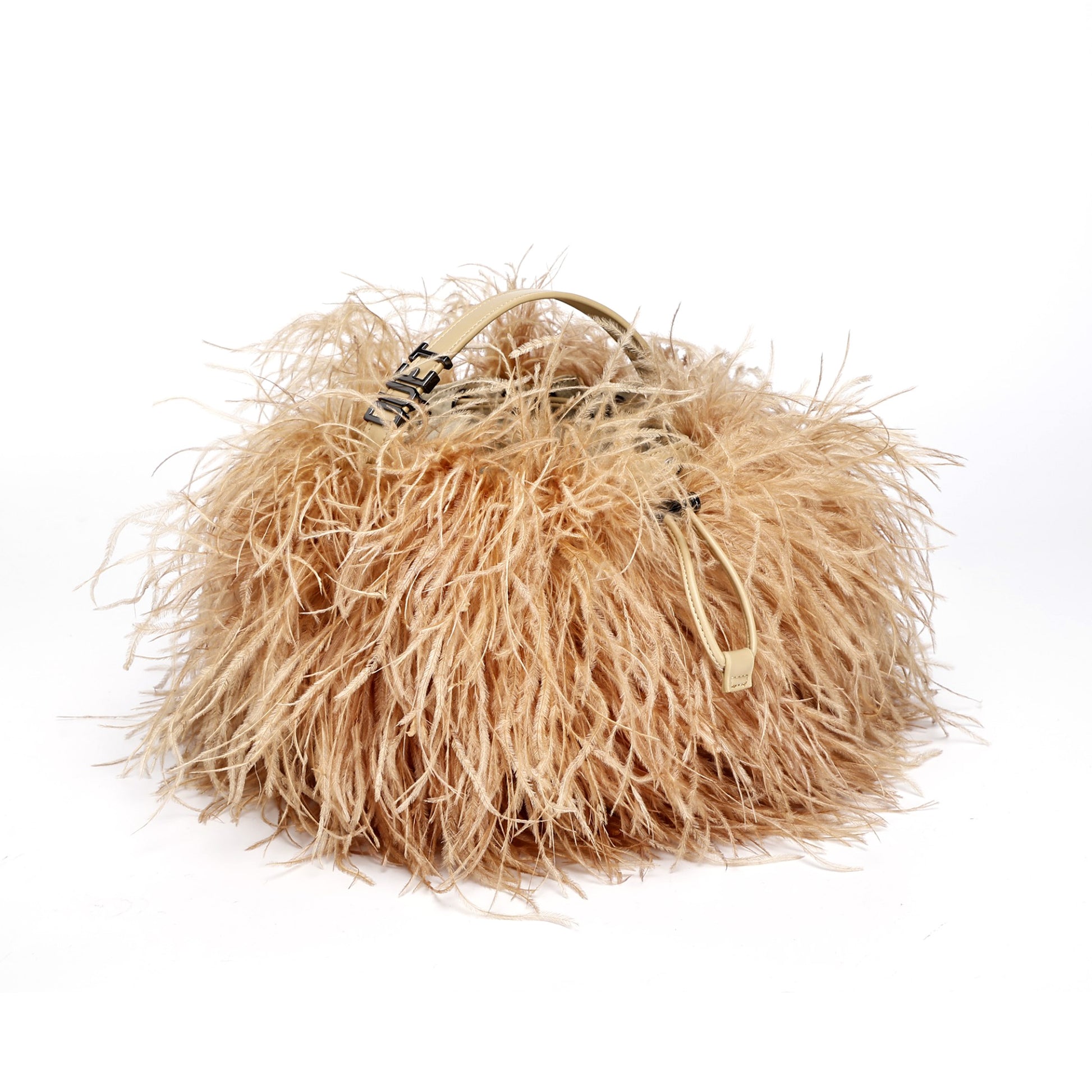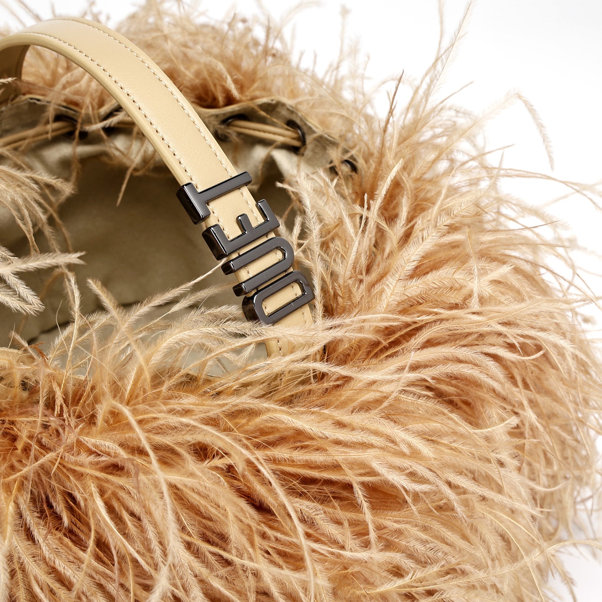 Sac en cuir de forme arrondie, le modèle SWAN est recouvert de véritables plumes d'autruche tombant en cascade sur l'intégralité de sa surface. Sa anse, non ajustable, est agrémentée de lettres de couleur noir avec effet chromé..
